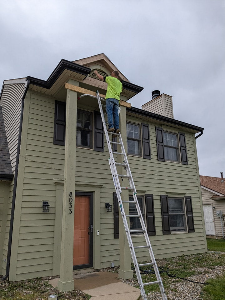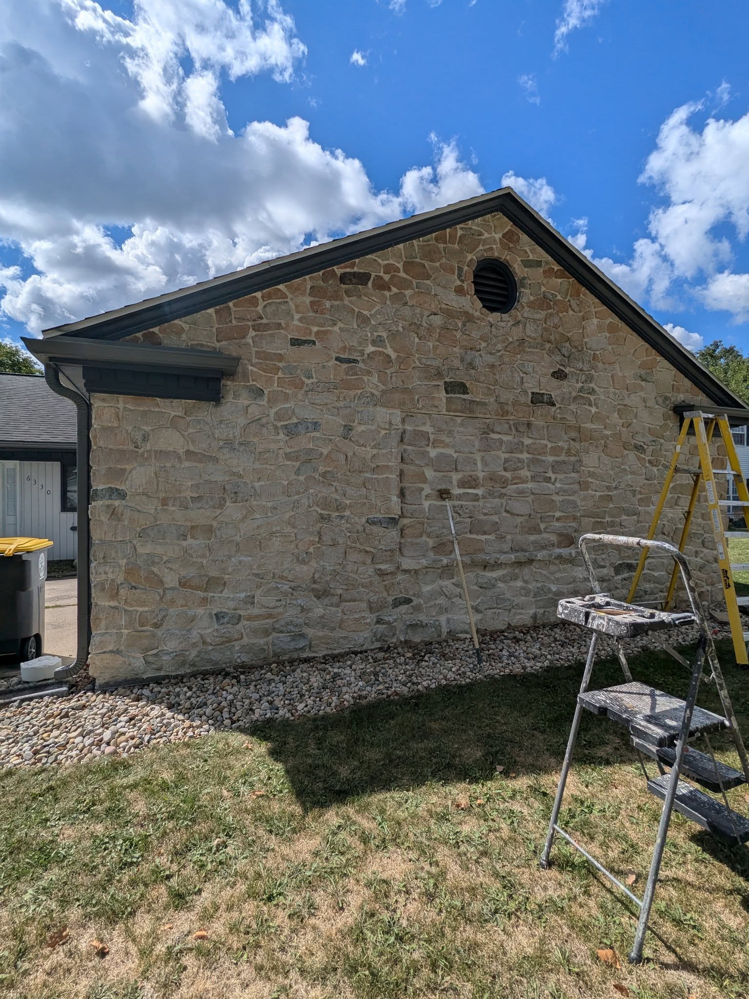 Outside pressure washing and painting Bout 14 ft of siding replaced.